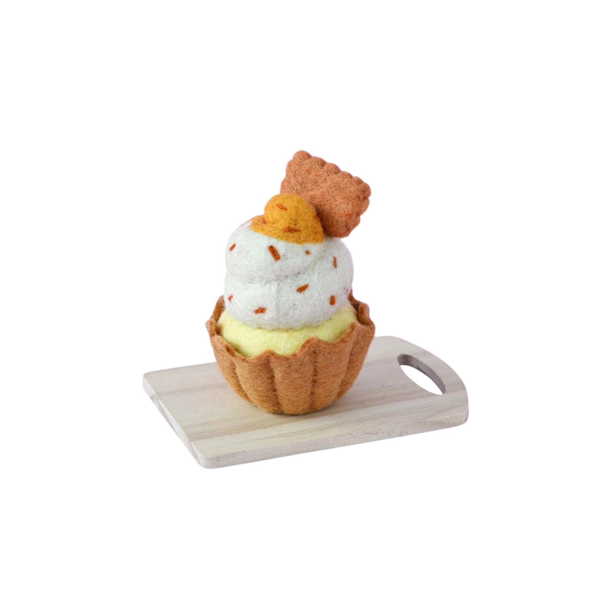 Ajoutez une touche délicieusement fantaisiste à la cuisine de votre enfant avec notre cupcake géant en feutre Biscoff ! Fabriqué à la main avec soin, ce gâteau géant en feutre est orné d'un doux tourbillon de glaçage inspiré du Biscoff et d'une décoration de biscuit réaliste en feutre. Idéal pour les goûters, les jeux de rôle autour de la pâtisserie ou les jeux de simulation sur le thème des desserts.