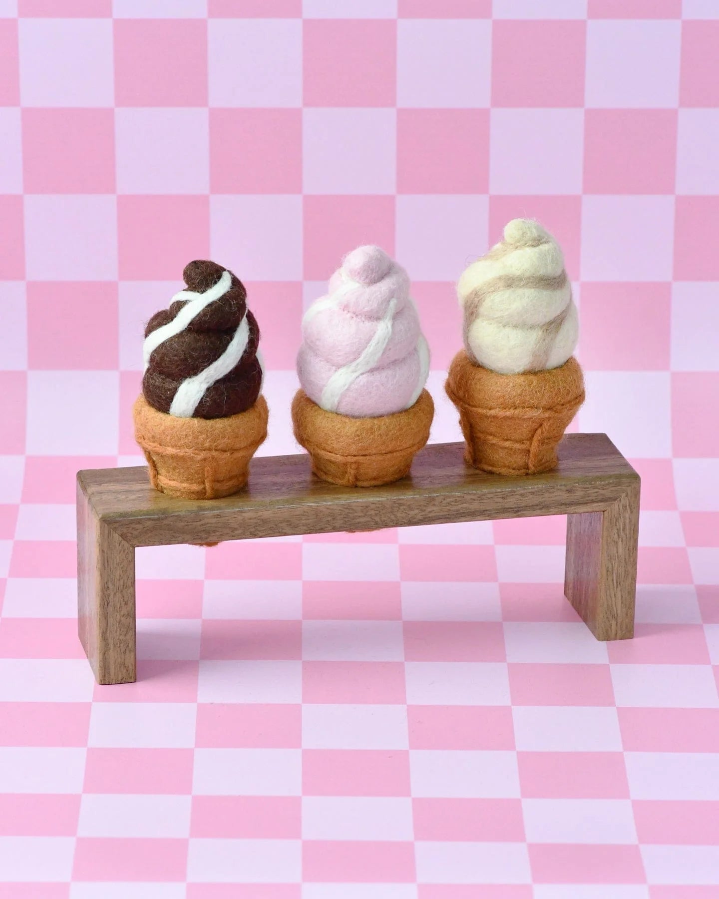 Ajoutez une touche de douceur à l'imaginaire de votre enfant avec notre cornet de crème glacée molle en feutre tourbillon de fraises ! Soigneusement fabriqué à la main en feutre de laine, ce charmant jouet est orné de tourbillons roses doux qui peuvent être déconstruits pour un jeu interactif et pratique. Idéal pour les stands de glaces factices, les goûters fantaisistes ou les jeux de rôle créatifs.